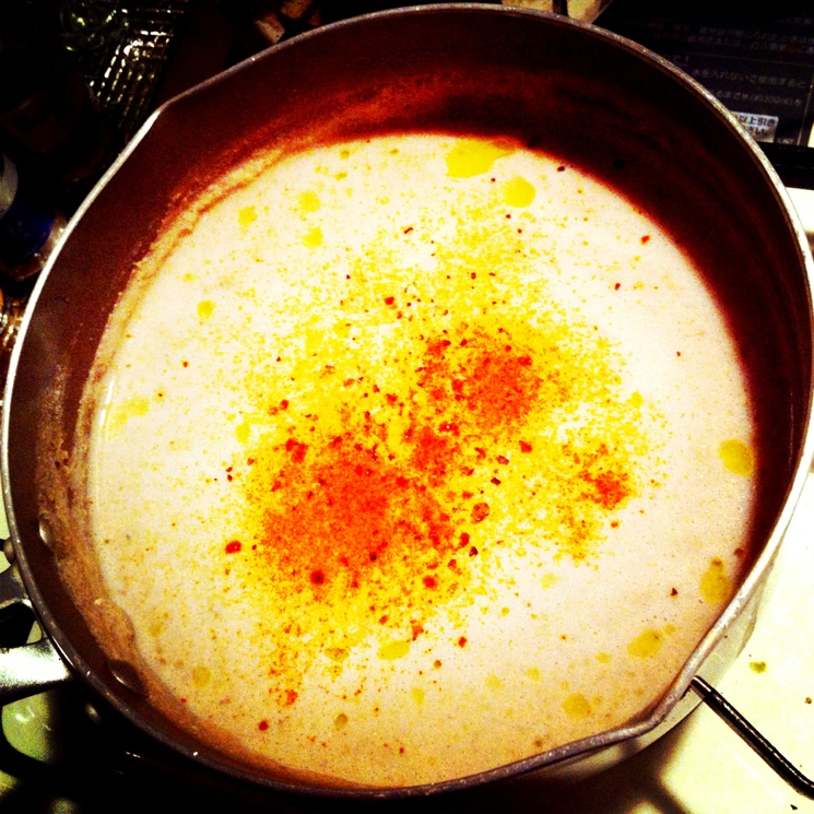 mるしーちゃんが来てくれたのだが週末のお出掛けのため予算きつきつなのでお家ごはん、ごめん。レンズ豆のスープは良く出来たと思う(豆の水煮缶をプロセッサかけて、豆乳とコンソメ入れて火にかけて、塩胡椒とパプリカで味整えるだけだが)。あとバゲットと鮭のバジルフリット、自家製ピクルス、果物とチーズ。