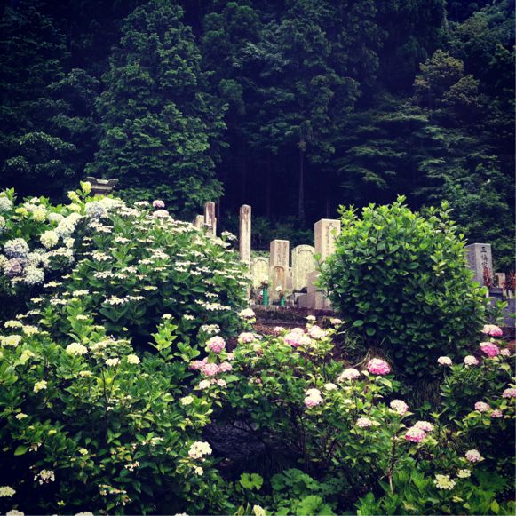 バス停から10分程参道を昇れば本堂と紫陽花園なので(急な坂と石段ではあるけど)長谷寺ほど歩き回らずにお目当てに辿り着けます。そして凄いなあと思ったのが、本堂裏。古い墓碑石塔石碑のある区画を抜けて裏の御山が。御山の斜面まで紫陽花の群生、こんな規模の紫陽花は初めて見た。