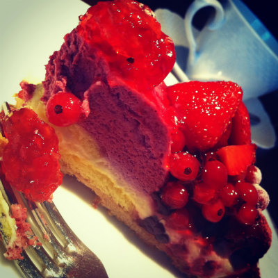 しょっぱなから失敗、心斎橋で降りてしまってアルションまで辿り着けないと感じたので、デリスデュパレ(路面店のほう)でだらーんとタルトとカフェラテ。ひときれが実に巨大なタルトですな……写真のフォークはデザート用ではなくて、ディナーフォークなんだぜ。ベリーたっぷりムースさわやかタルト台ほっくり甘くて美味。だが個人的にはこんなにでかいのいらん、半分でいい。でかいなりの結構なお値段するしな。