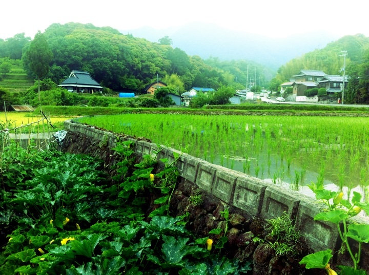 神戸帰ってました。鏡のような水面に青い苗がすっくと立って美しい季節だ。やがて夏には青々と風が渡り、秋には黄金の大地。BGMは久石譲で。蛍もいるらしいんだけどまだ見た事は無い。