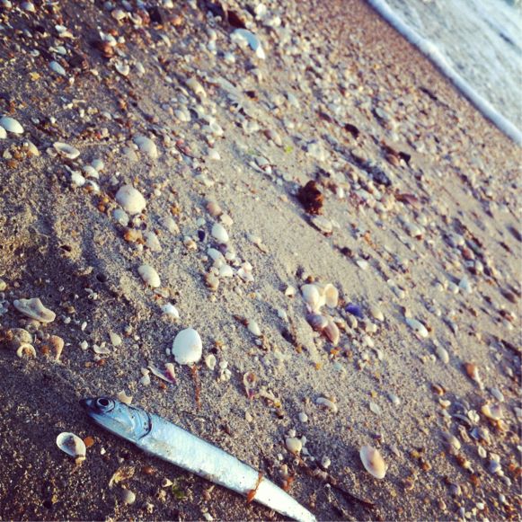 イワシの死。みな等しくモータルである。通り過ぎて振り返ればすでに波間に消える死。世界は海みたいなものだね。